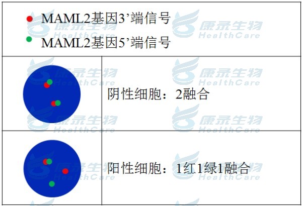 MAML2 基因重排不仅可以作为PMEC 重要的分子诊断指标,还与 PMEC 预后好密切相关,并可能是 PMEC 发生中的重要驱动因素;难以与更具侵袭性的腺鳞癌(ASC)区分时,MAML2可作为腺鳞癌诊断的高特异性排除工具(MAML2重排阴性),MAML2 重排的缺失可视为腺鳞癌的确认依据; Warthin样黏液表皮样癌(WL-MEC):WL-MEC是一种罕见但具有临床意义的病理亚型,临床上罕见MEC亚型及化生性WT时存在诊断挑战。通过整合细致的临床与组织学特征评估,并结合针对MAML2基因重排的荧光原位杂交(FISH)检测,可形成可靠的鉴别诊断体系。