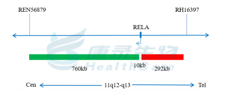 RELA基因5’端标记为橘红色; RELA基因3’端标记为绿色。
