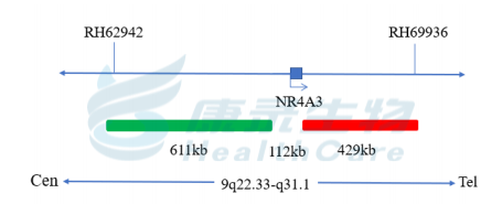 NR4A3基因3’端标记为橘红色; NR4A3基因5’端标记为绿色。