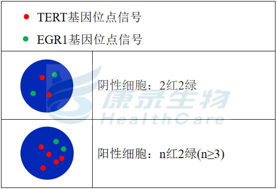 TERT基因(5p15.33)标记为橘红色; EGR1基因(5q31.2)标记为绿色。