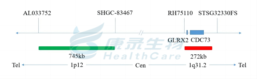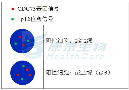 CDC73橘红色探针;1p12绿色探针。