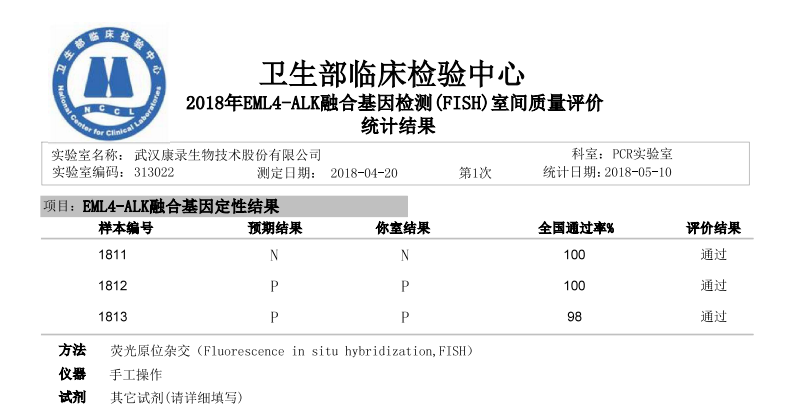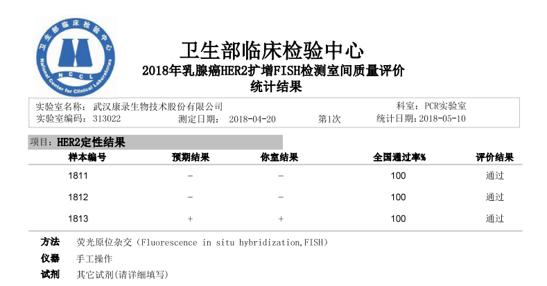 2018年5月10日,william威廉英国官网(以下简称“william威廉英国官网”),再一次以满分成绩顺利通过国家卫生部临床检验中心(NCCL)测评,包括两个项目:乳腺癌HER2扩增FISH检测、EML4-ALK融合基因检测。