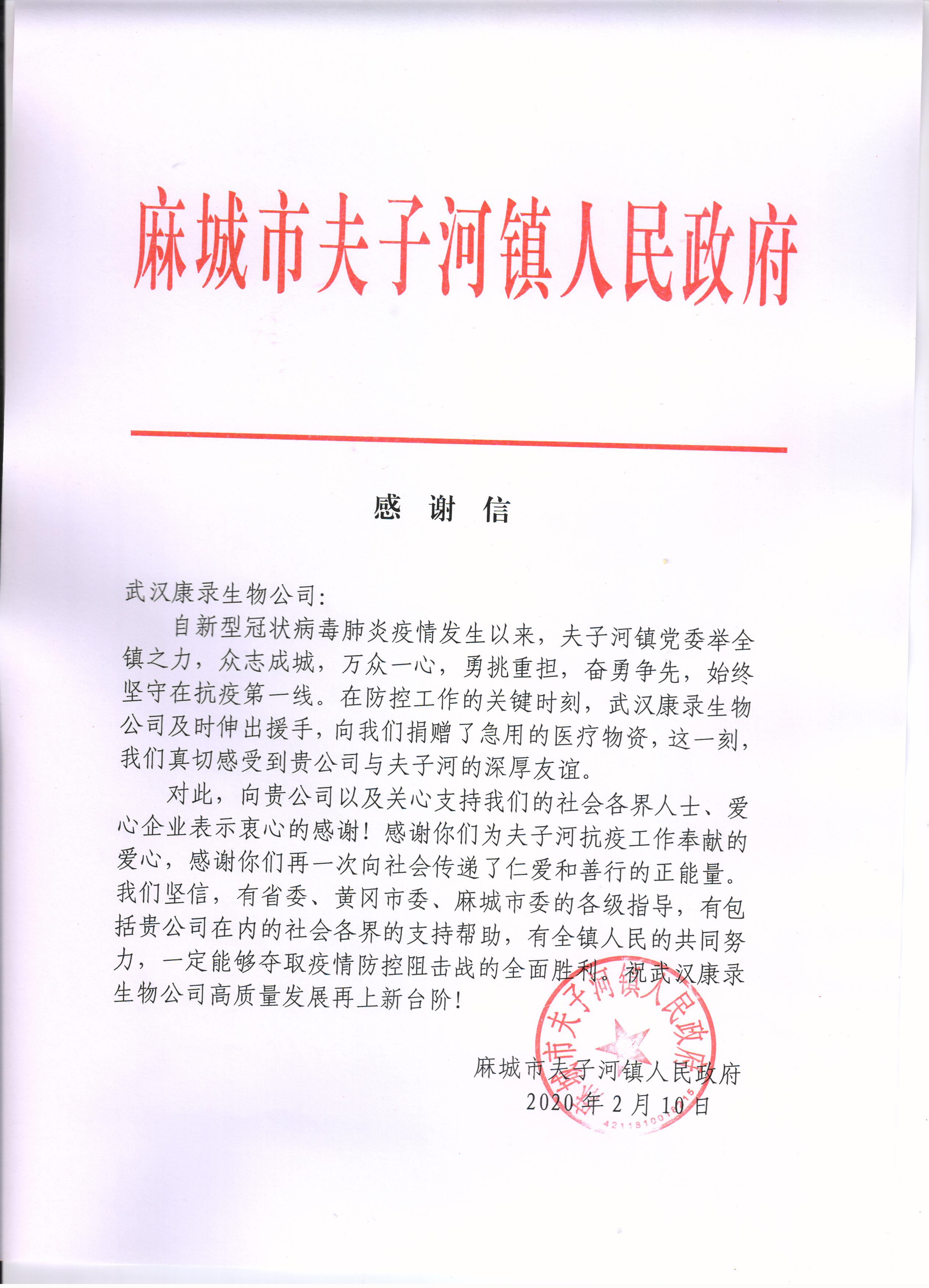面对肆虐神州大地的病毒,我们康录人的优秀代表——甘志涛同志主动请缨多方护送试剂和医护人员及捐赠物资。其中,麻城市夫子河镇人民政府特地向william威廉英国官网表达了衷心的感谢。就像感谢信里说的,社会需要我们去传递仁爱和正能量,举全国之力,众志成城,万众一心,没有打不倒的敌人,更没有歼灭不了的病毒!