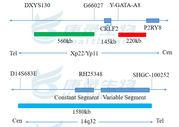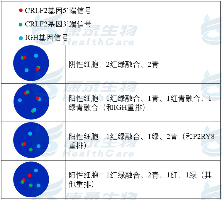 CRLF2橘红色探针;CRLF2绿色探针;IGH青色探针
