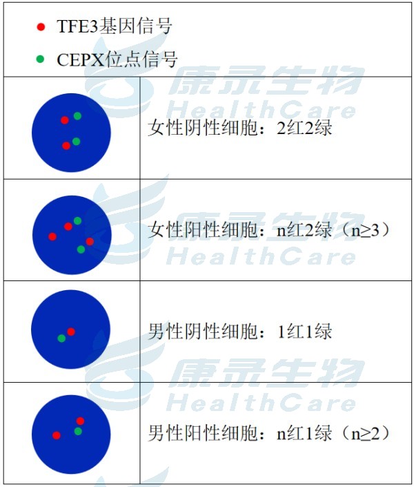 TFE3 扩增橘红色探针、CEPX 绿色探针